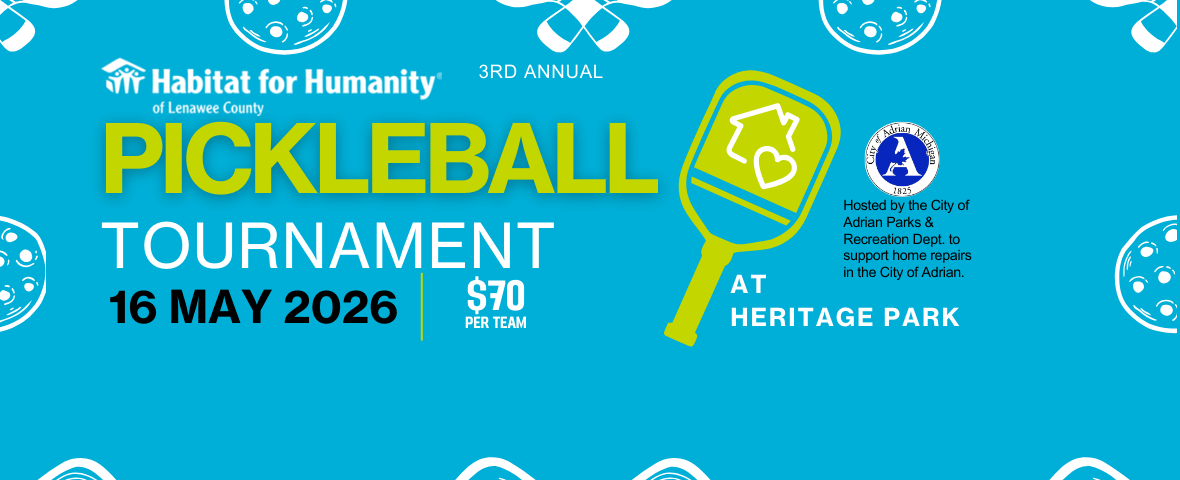 By submitting this form, you are granting: Habitat for Humanity of Lenawee County, 1043 E US-223, Adrian, Michigan, 49221, United States, https://www.habitat-lenawee.org permission to email you. You may unsubscribe via the link found at the bottom of every email. (See our Privacy Policy for details.) Emails are serviced by Constant Contact.