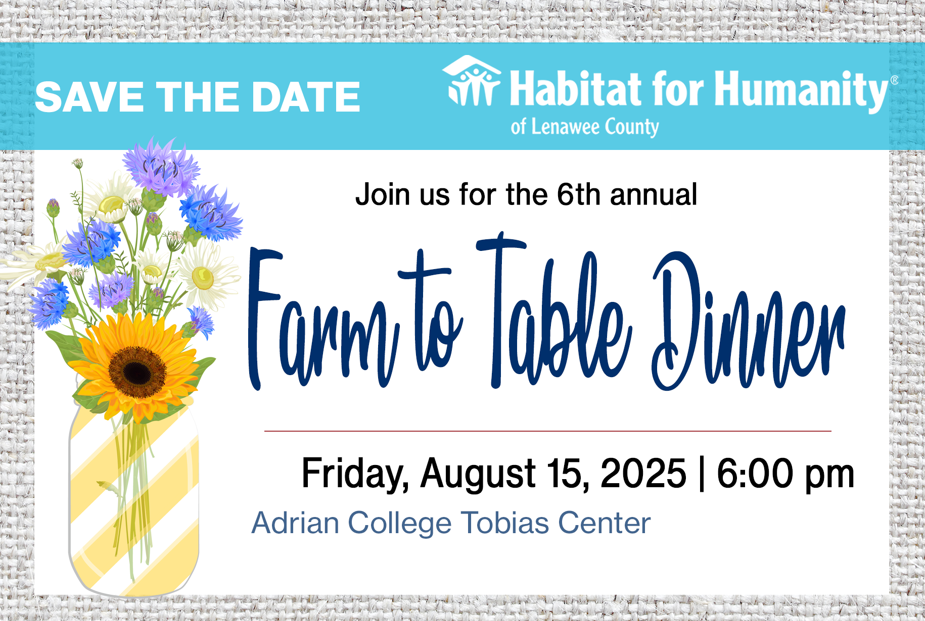 The 6th Annual Farm to Table Dinner, held on Friday, August 15, 2025, at Adrian College, was a sold-out success—raising over $100,000 in support of Habitat for Humanity of Lenawee County!
